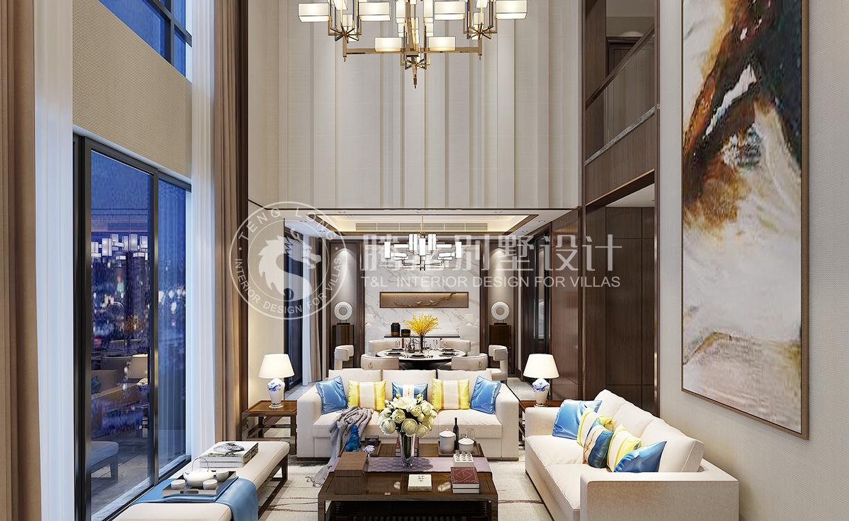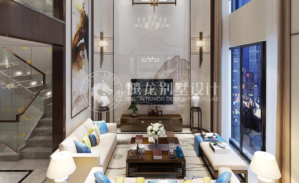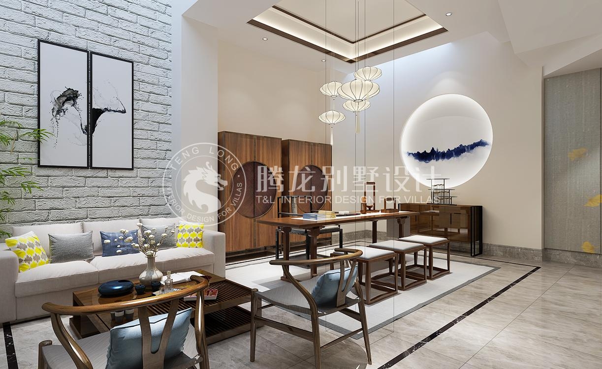 绿地海域天境新中式风格别墅装修效果图-1