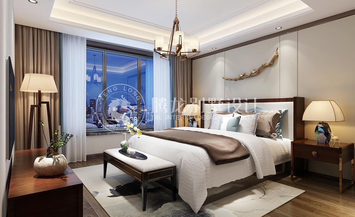 绿地海域天境新中式风格别墅装修效果图-5