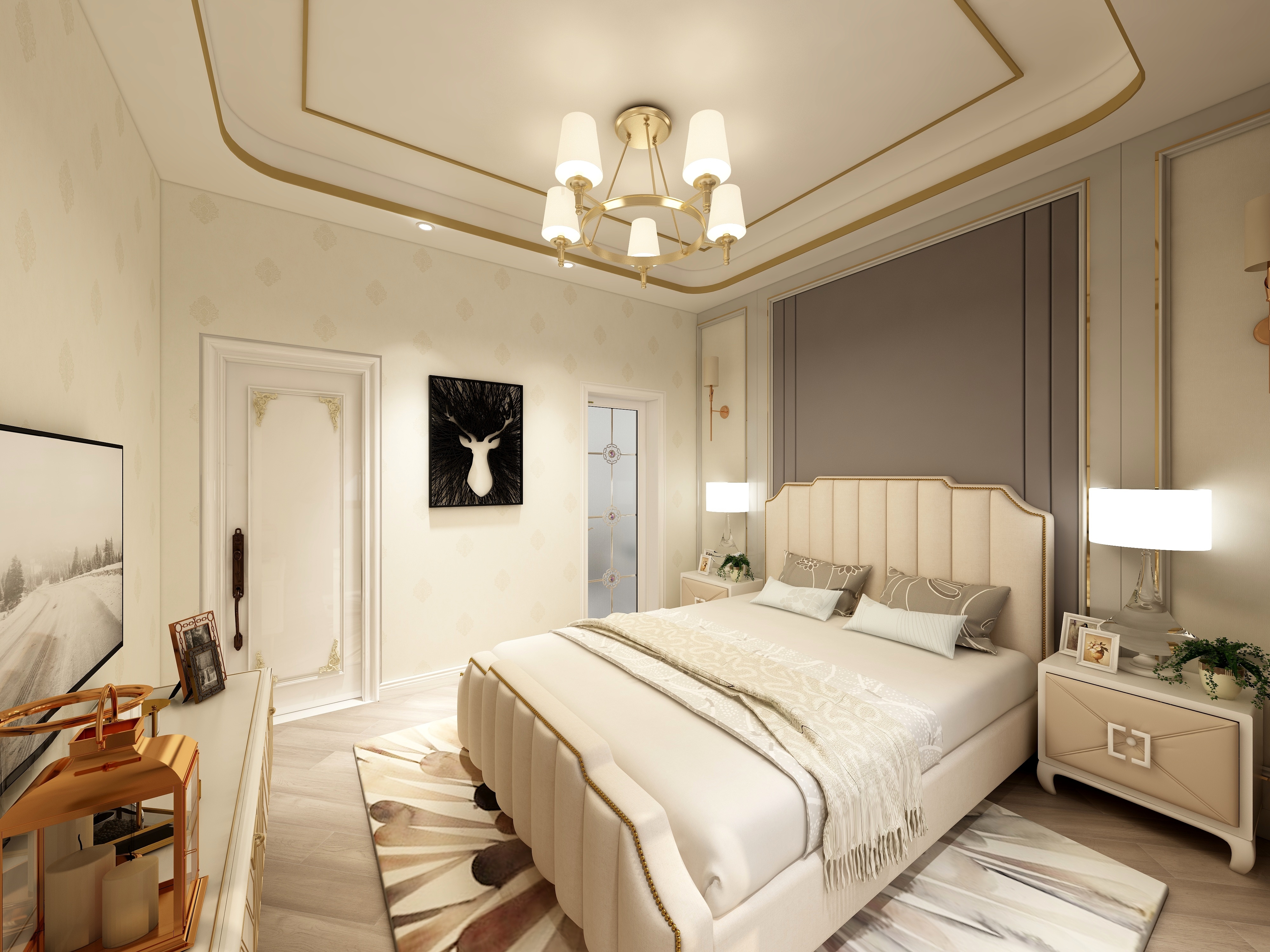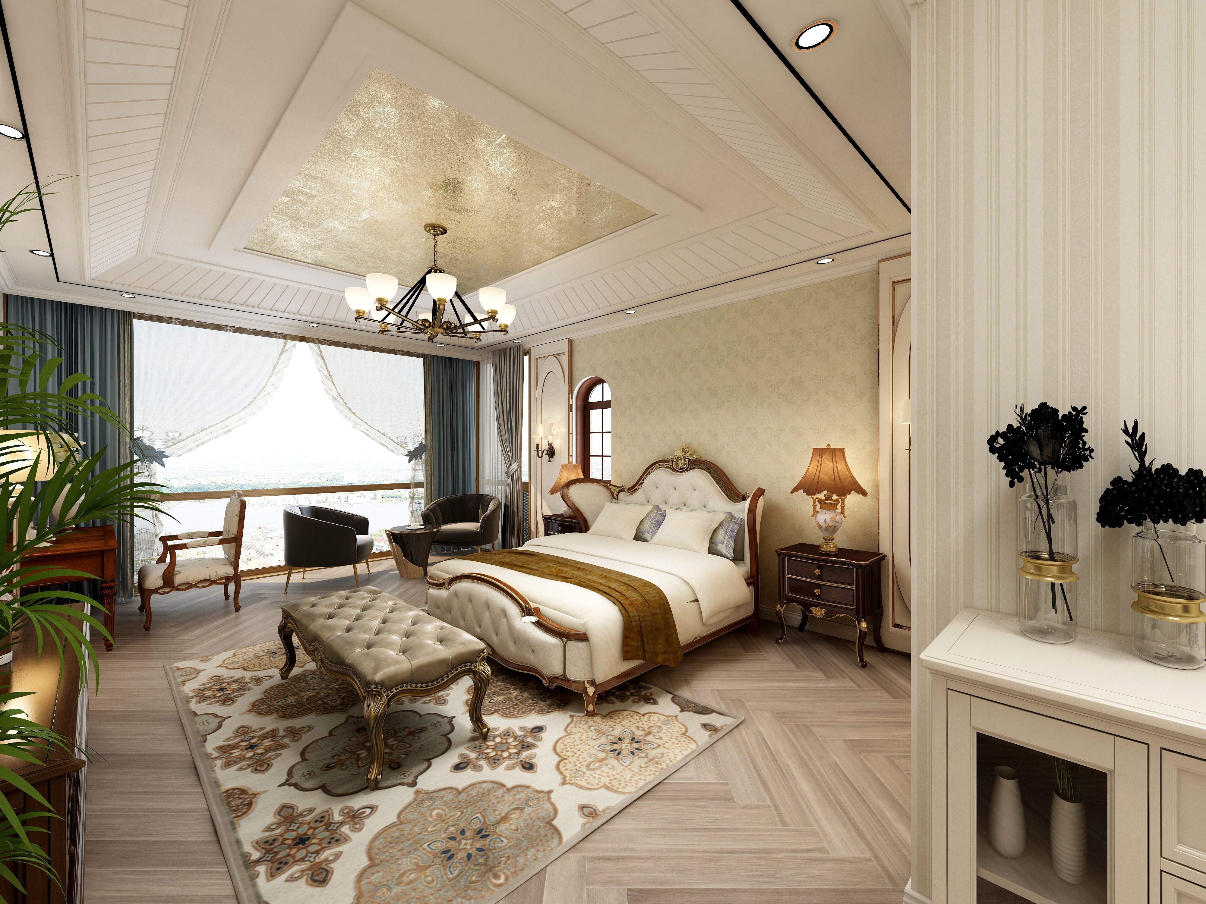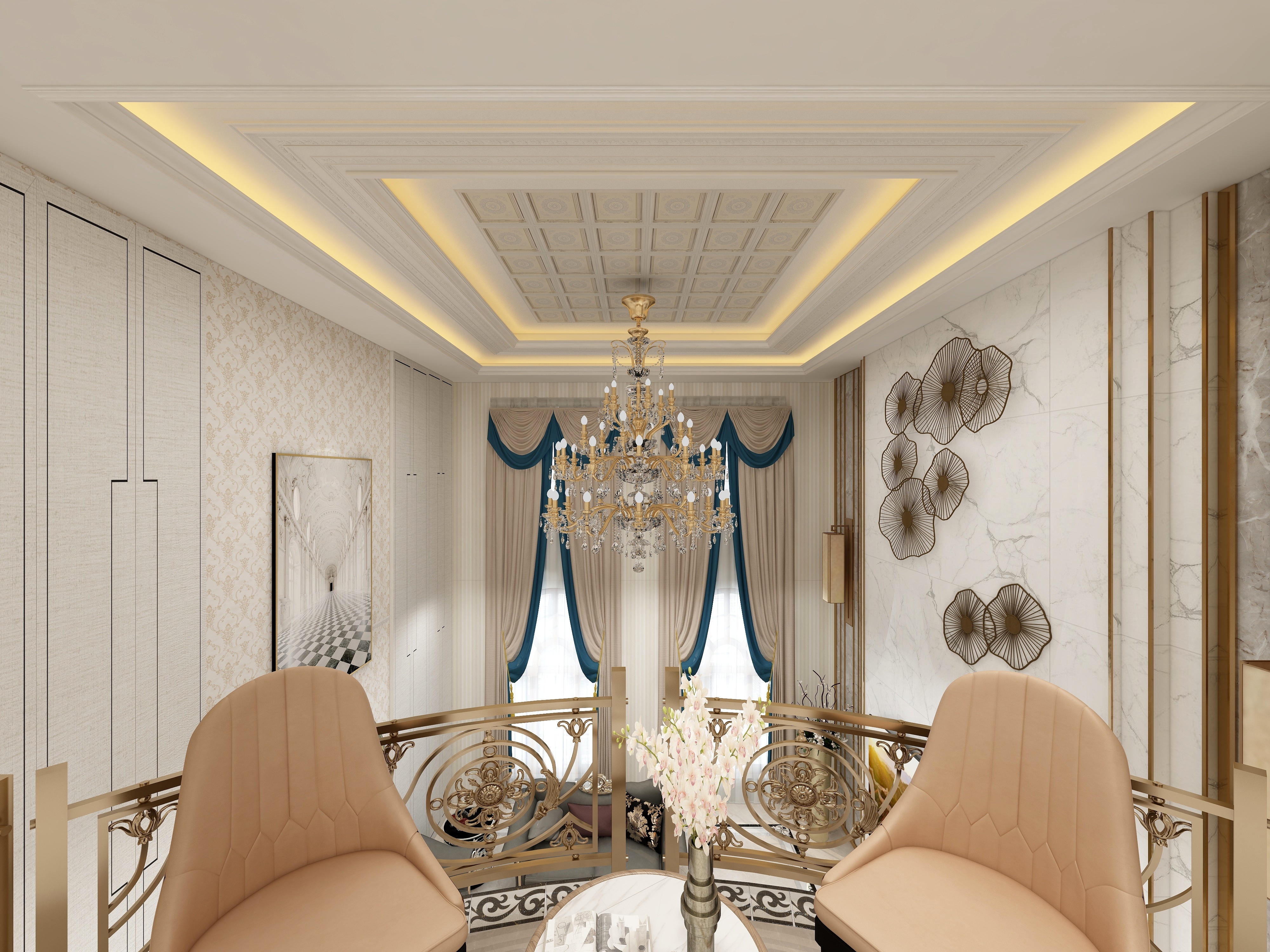 绿城玫瑰园法式风格别墅装修效果图-3
