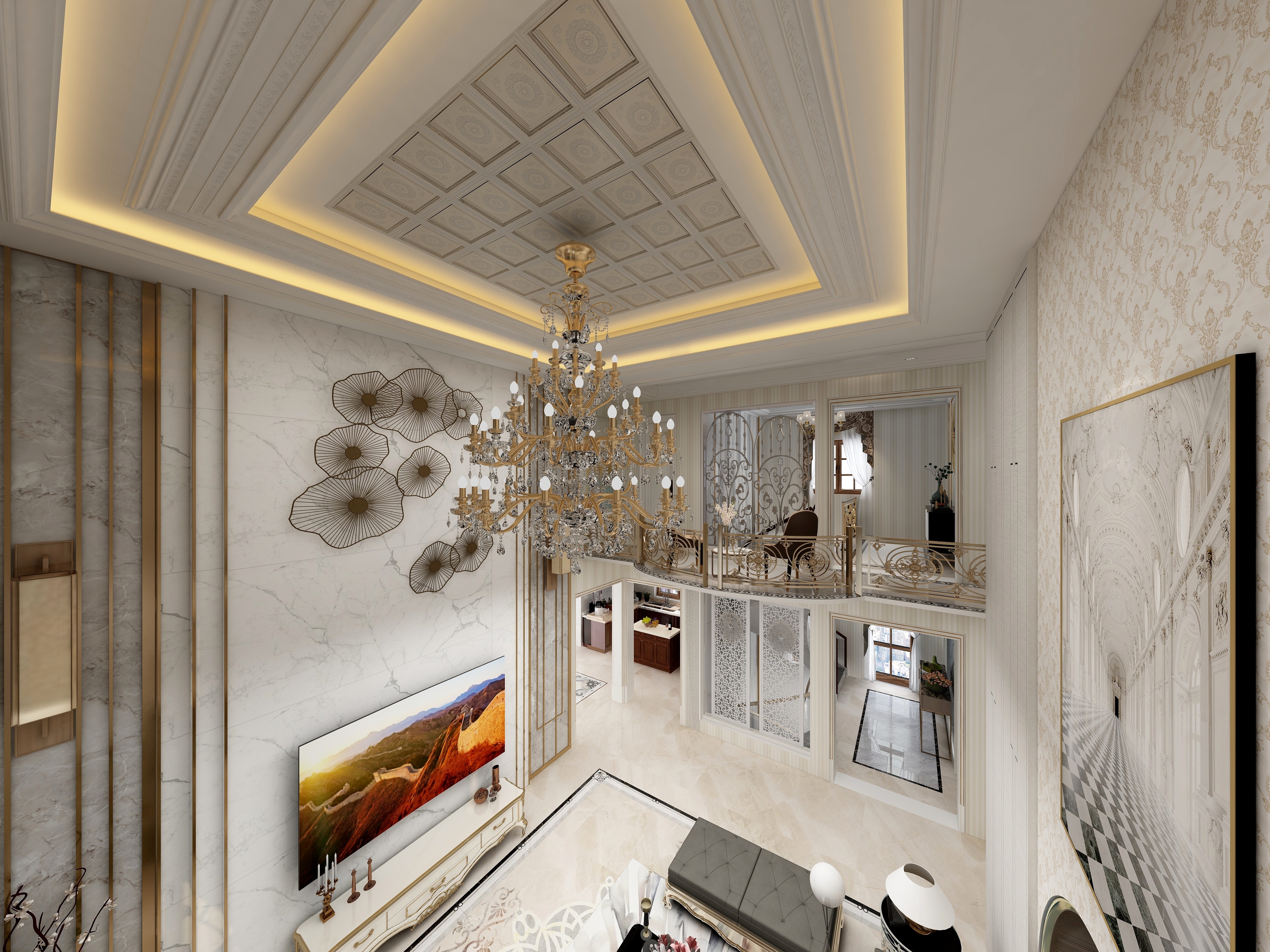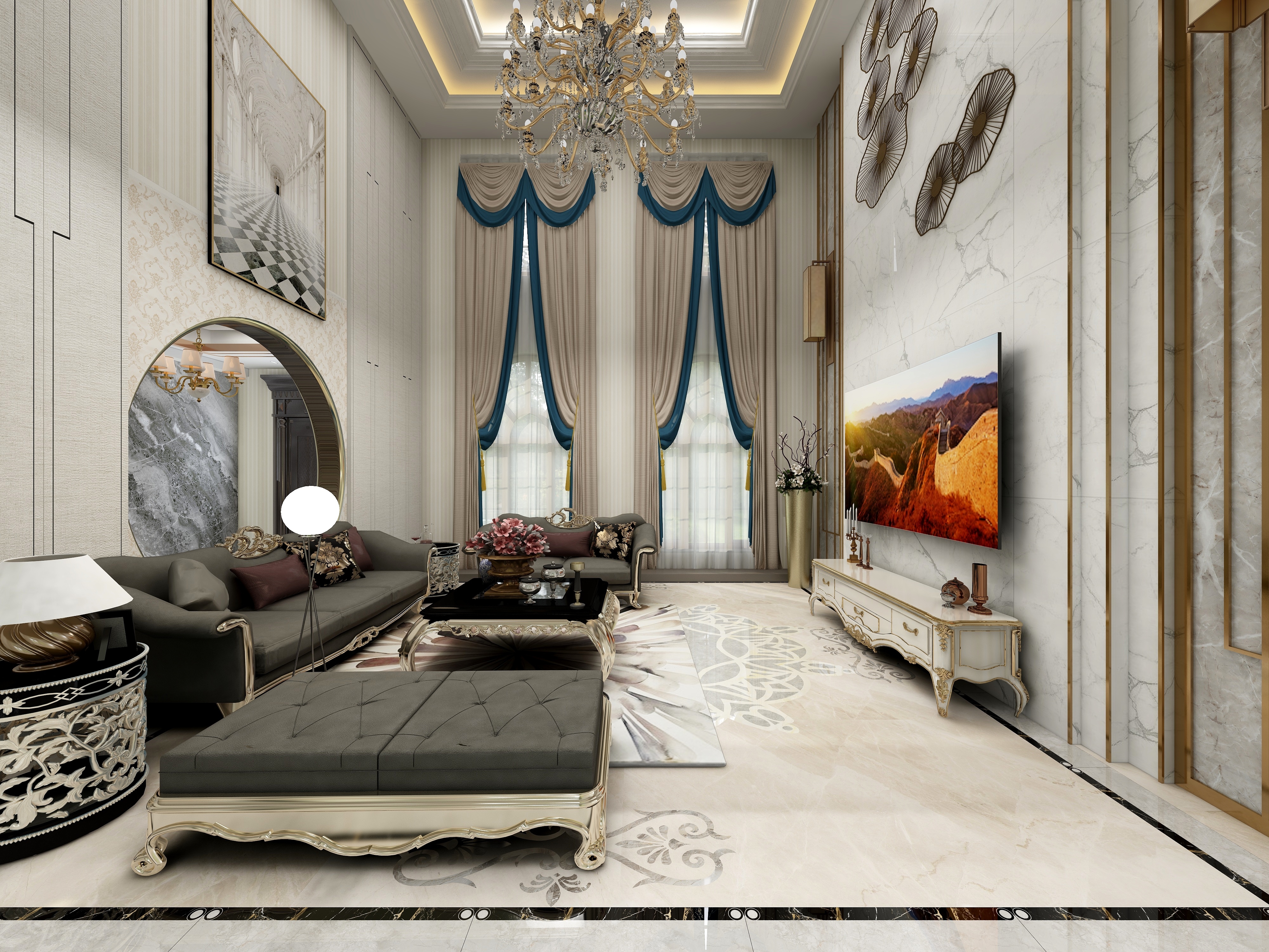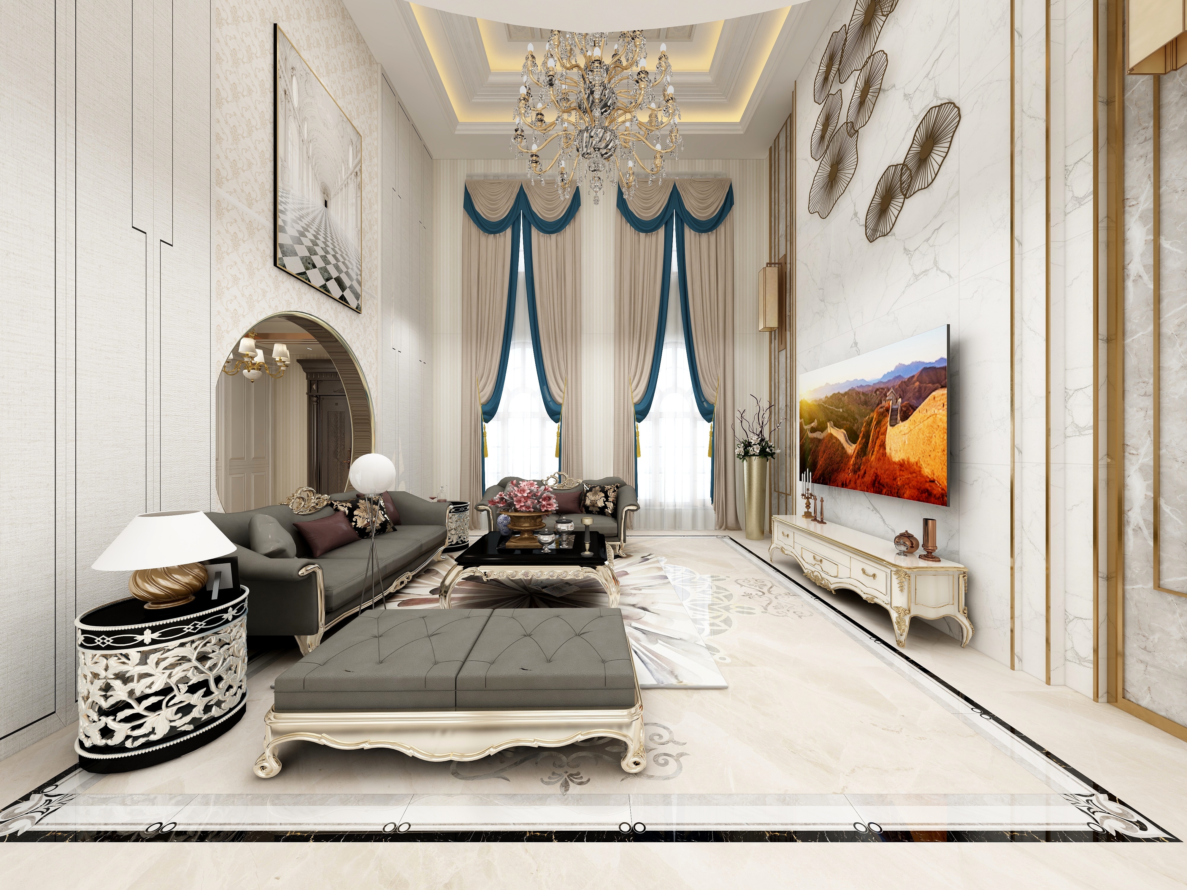 绿城玫瑰园法式风格别墅装修效果图-1