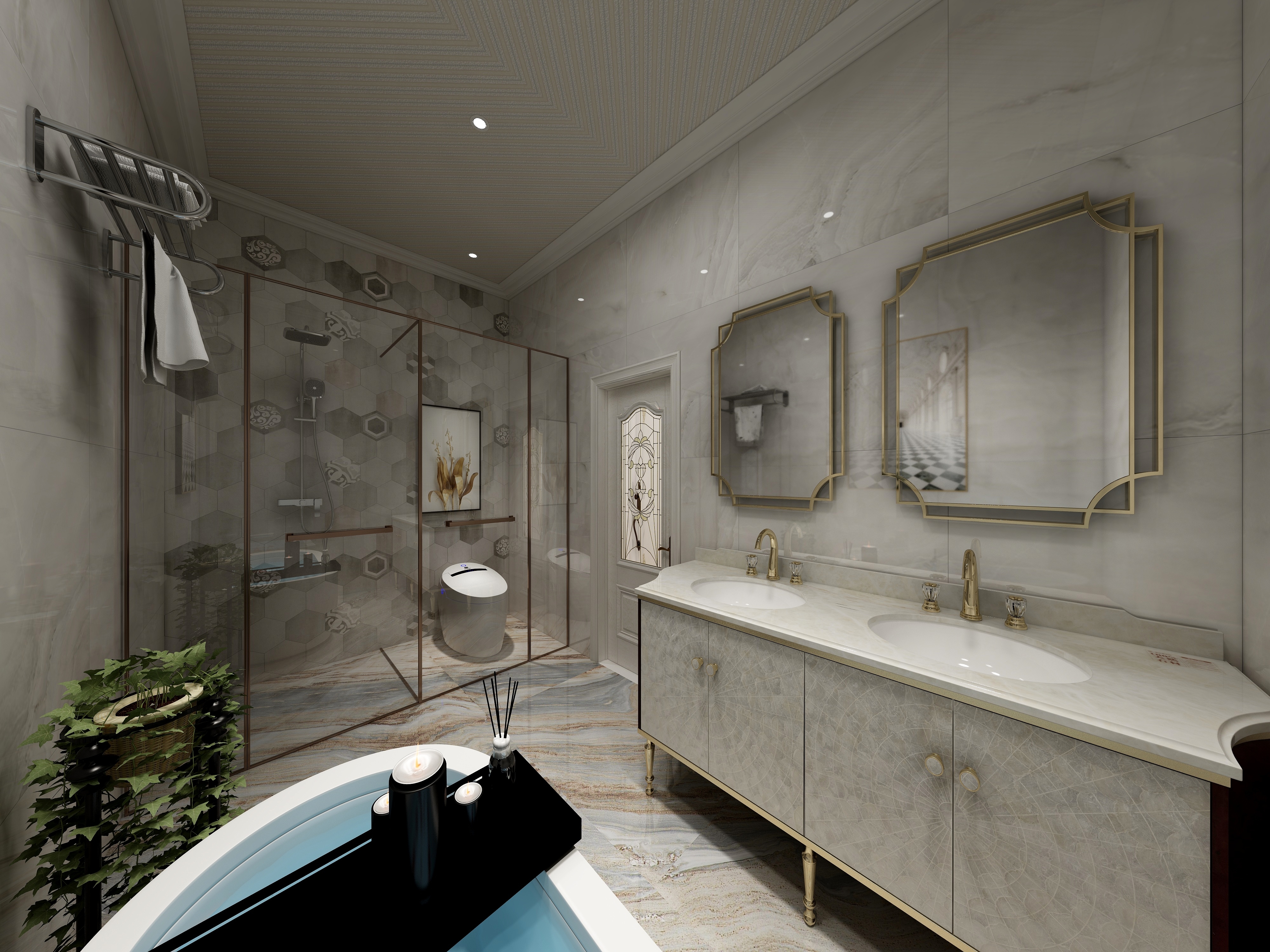 绿城玫瑰园法式风格别墅装修效果图-13