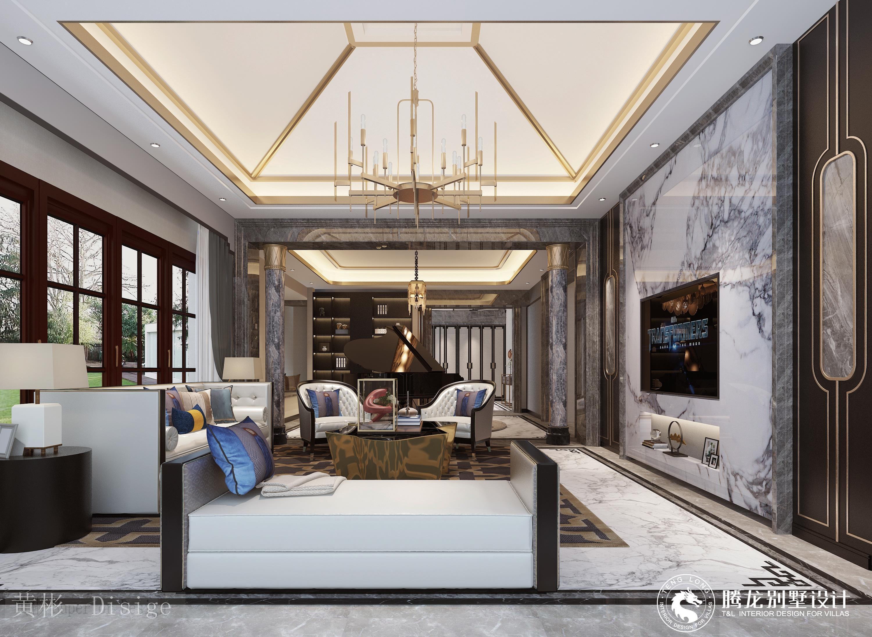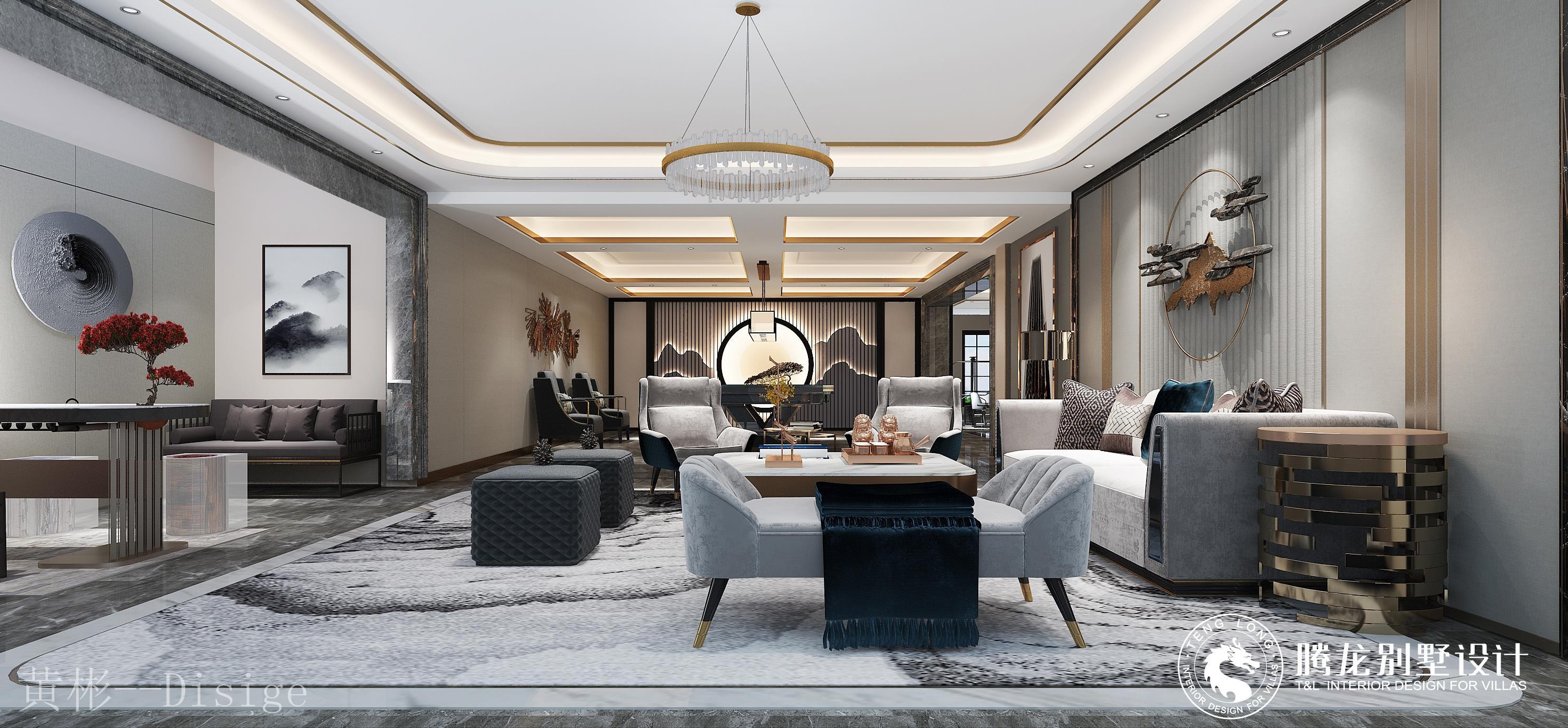 博园颖奕高尔夫别墅新中式风格别墅装修效果图-1